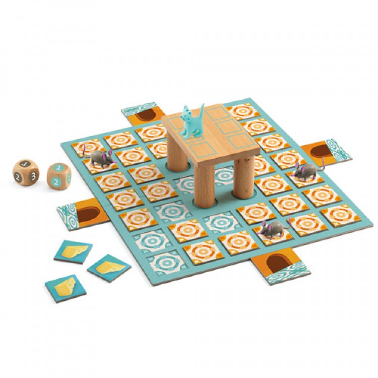 Επιτραπέζιο τακτικής ανάμεσα στη γάτα και το ποντίκι από την εταιρία Djeco. Η γάτα θέλει να φάει το ποντίκι και το ποντίκι το τυρί. Ποιος θα προκαλέσει τη μεγαλύτερη αναστάτωση στην κουζίνα; Η τρισδιάστατη εικονογράφηση και τα εντυπωσιακά του χρώματα σίγουρα θα τραβήξουν την προσοχή μικρών και μεγάλων. Κατάλληλο για ηλικίες 6 ετών και άνω και για 2 έως 5 παίκτες. Μέση διάρκεια παιχνιδιού 15 λεπτά. Διαστάσεις Συσκευασίας: 30 x 26 x 4 εκ.