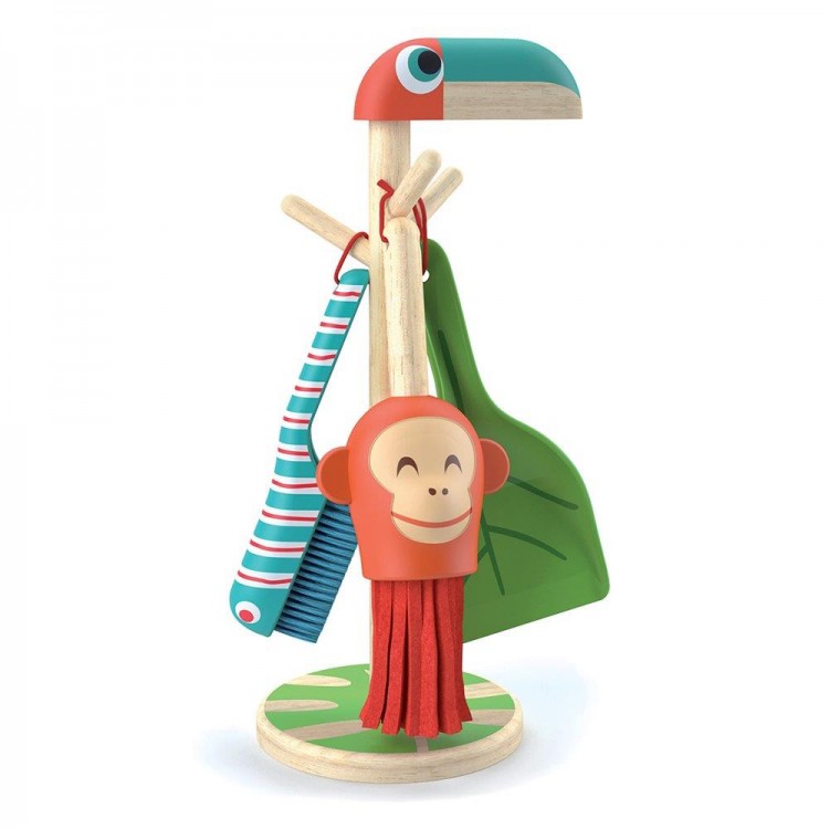 Ξύλινο παιχνίδι ρόλων από την εταιρεία Djeco, με το οποίο το παιδί εξοικειώνεται με τον εξοπλισμό καθαριότητας. Ένα ολοκληρωμένο πολύχρωμο σετ που περιλαμβάνει σκούπα, φαράσι, σφουγγαρίστρα και μια εύχρηστη ξύλινη βάση με γάντζους για να βρίσκονται όλα τακτοποιημένα. Ένα ιδιαίτερο παιχνίδι που αναπτύσσει τις κινητικές και κοινωνικές δεξιότητες, τον συντονισμό ματιού - χεριού και ενισχύει τη φαντασία και την αυτονομία, ενώ προσομοιάζει τους καθημερινούς κανόνες καθαριότητας κάθε νοικοκυριού! Κατάλληλο από 3 ετών.