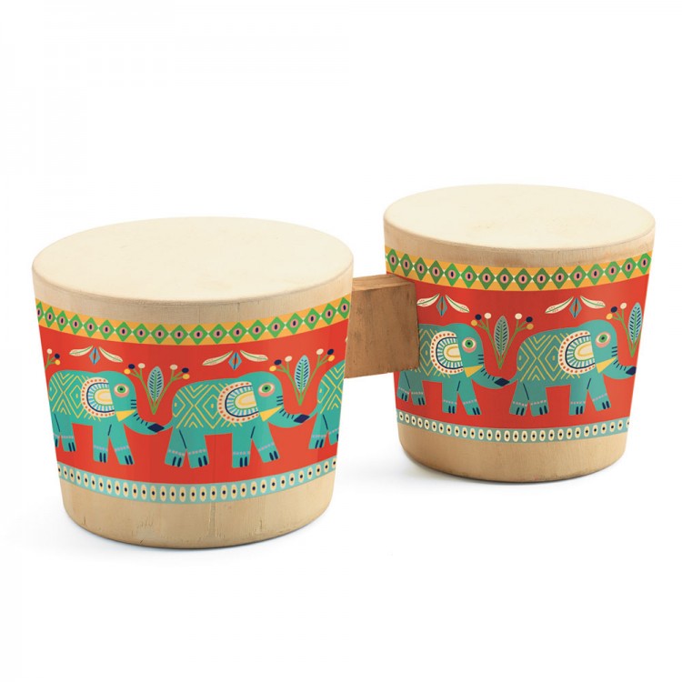 Ξύλινα μπόνγκο ντραμς από την εταιρεία Djeco. Μπείτε στον ρυθμό με τη βοήθεια των ευφάνταστων τυμπάνων με τα ελεφαντάκια που είναι εικονογραφημένα από την Magali Attiogbe. Διαστάσεις: 26x12x10 εκατοστά. Κατάλληλο απο 3 ετών και άνω.