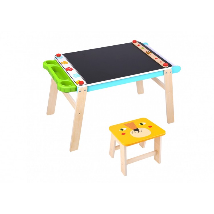 Αυτό το ξύλινο σετ που αποτελείται από παιδικό γραφείο και κάθισμα έχει υπέροχα ζωηρά χρώματα είναι το ιδανικό μέρος για ατελείωτο παιχνίδι!Κατάλληλο για παιδιά άνω των 3 ετών.Διαστάσεις γραφείου: 86.7x50x50Διαστάσεις καθίσματος: 30x22.5x22.5
