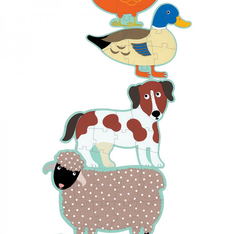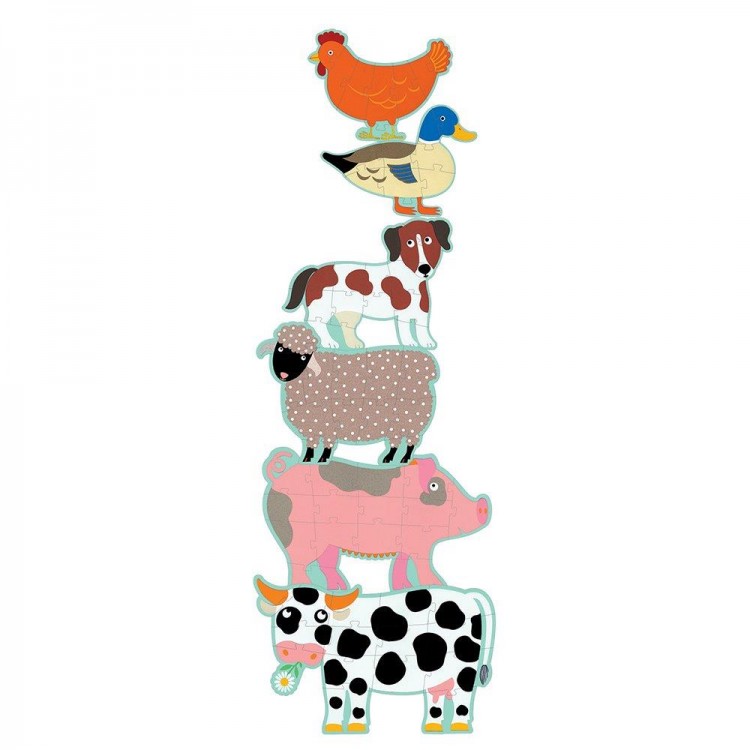 Τα ζώα της φάρμας επισκέπτονται το δωμάτιο των μικρών μας φίλων! Στη συσκευασία περιλαμβάνονται 6 παζλ από 9,12 και 15 κομμάτια ανά δύο. Κατασκευάστε το πάζλ της εταιρίας Djeco και παρατηρήστε τα ζωάκια να παίζουν μαζί σας! Το ύψος της κατασκευής είναι 1,40 μ. Κατάλληλο από 3 ετών και άνω.