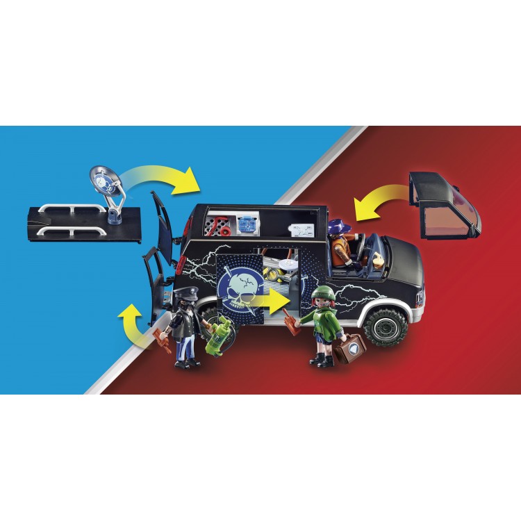 Εξοπλισμένο με ένα γάντζο, το ελικόπτερο απογειώνεται και καταδιώκει το καμουφλαρισμένο βαν των ληστών. Η πινακίδα κυκλοφορίας του βαν αποκαλύπτεται με την τριβή! Διαστάσεις (βαν): 28,5 x 11,5 x 14,5 εκ. (MxΠxΥ)