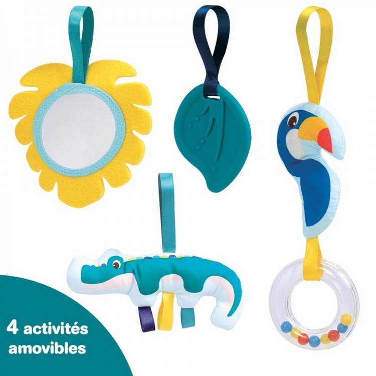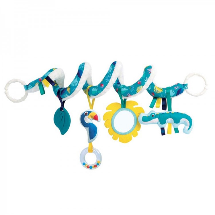 Μια υπέροχη πρόταση δώρου της εταιρείας Ludi για κάθε νεογέννητο, που θα του κρατά συντροφιά πάντα και παντού. Το σπειροειδές σχήμα αυτής της αλυσίδας επιτρέπει το κρέμασμα σε όλους τους τύπους καθισμάτων αυτοκινήτου, καροτσιού ή κούνιας. Οι ήχοι, τα έντονα χρώματα και σχέδια, οι διαφορετικές υφές και η κίνηση, συμβάλλουν στην ανάπτυξη των αισθήσεων του βρέφους, της οπτικής και ακουστικής αντίληψης του, των λεπτών κινητικών δεξιοτήτων και της φαντασίας του. Διαθέτει καθρεφτάκι, φυλλαράκι με ήχο θροΐσματος, κουδουνίστρα με χρωματιστές χάντρες, κουδουνάκι κ.α. Διαστάσεις: 60 x 20 εκ. Υλικό κατασκευής: 100% πολυεστέρας. Κατάλληλο από τη γέννηση.