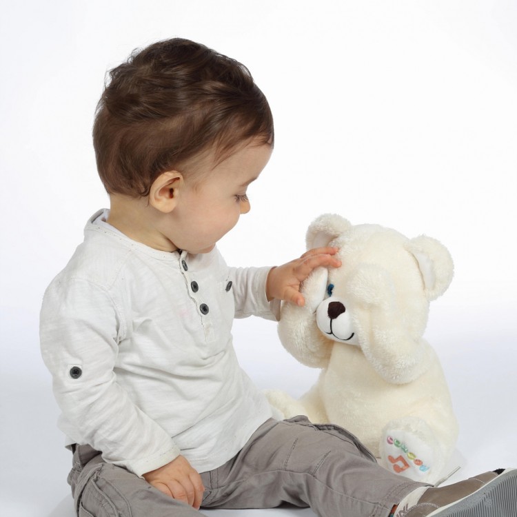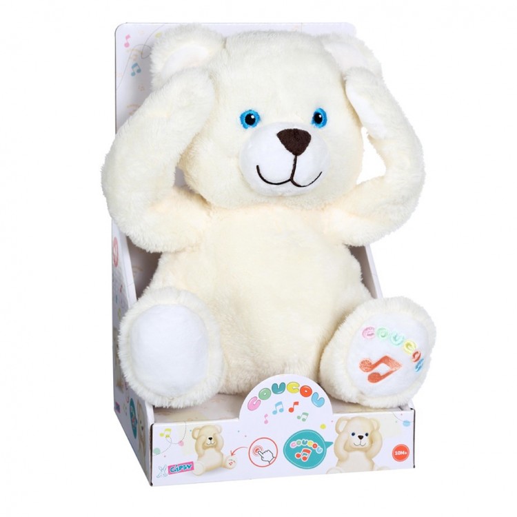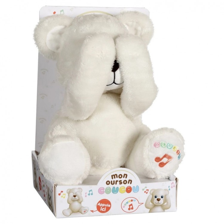 Το αρκουδάκι Coucou θα κάνει το μωρό να γελάσει σίγουρα: όταν πιέζετε το πόδι του, κάνει κούκου τζα με τα χέρια του και ακούγεται ένα παιδικό γέλιο. Επιπλέον, είναι πολύ απαλό και επομένως τέλειο για αγκαλιά. Είναι ο ιδανικός σύντροφος για νήπια που το διασκεδάζουν ενώ το περιποιούνται με αγάπη και τρυφερότητα.Λειτουργεί με 2 μπαταρίες LR06 που παρέχονται και μπορούν να αντικατασταθούν.Διαστάσεις/Περιεχόμενο: 16 x 18,5 x 29 εκ.